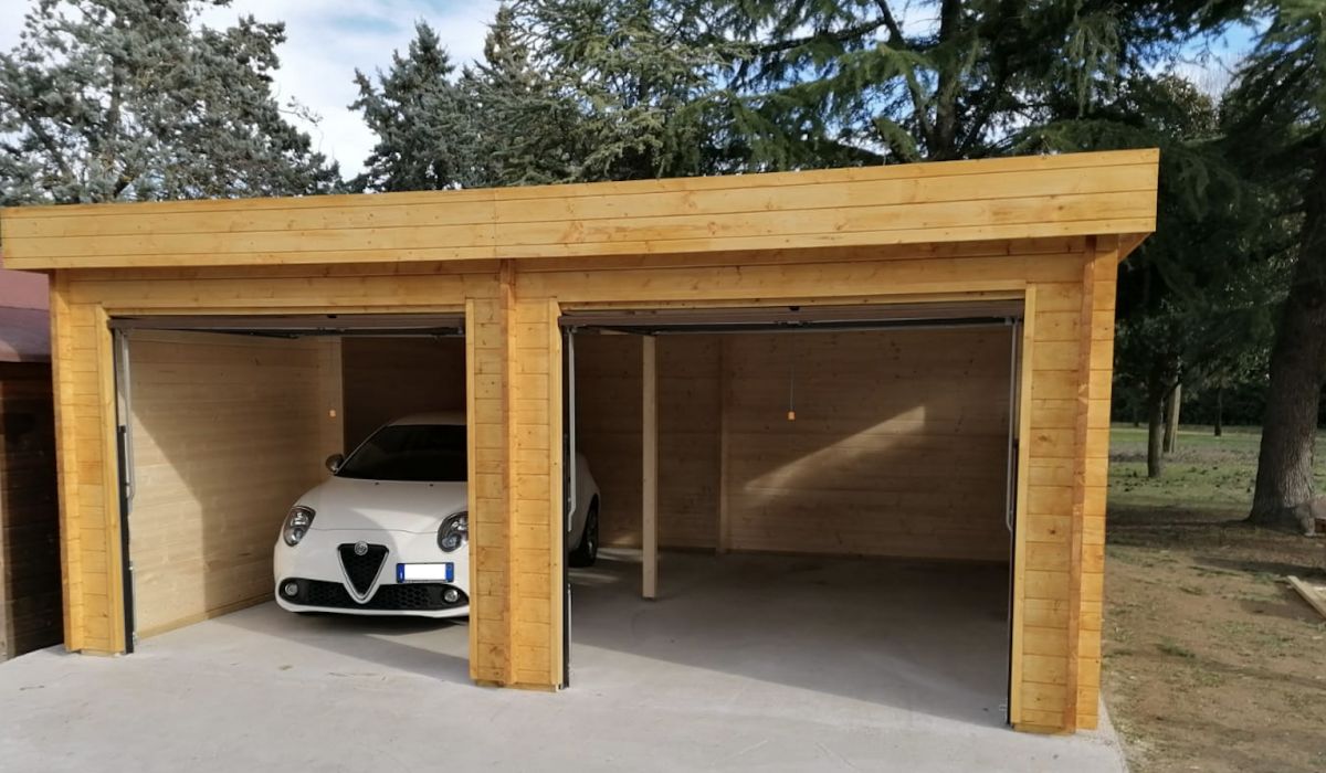 SATIN: "avevo già un garage in legno blockhouse comprato molti anni fa. Un garage singolo sempre a struttura blockhouse che mi ha protetto una auto per tanti anni. Ora che la famiglia è cresciuta e di auto ne abbiamo tre, abbiamo deciso non solo di cambiare il vecchio garage singolo ma anche di posizionarne uno doppio a fianco per poter ricovere tutte le tre auto ed avere anche spazio addizionale per immagazzinare box e cartoni. Entrambi li abbiamo acquistati da Casette Italia perche non volevamo scendere a compromesso con la qualità del prodotto. Preferisco spendere qualcosa in più ma avere dei garage belli, robusti e che mi durano 30 anni. Infatti, ho scelto per entrambi la versione moderna, ovvero con tetto piatto, ampio fascione perimetrale del tetto e design molto lineare. Questo tipo di linee si sposa perfettamente con la mia casa moderna. Per tutti i 3 portoni ho scelto le porte basculanti HORMANN con motorizzazioni dei basculanti. Anche per esse ho scelto il meglio: portone con perline in legno della medesima essenza del resto del garage. Casette Italia ha fatto un ottimo lavoro nel produrre questi garage e la squadra di montatori locali, di Padova, sono riusciti a montare il garage doppio in un sol giorno: 4 persone davvero brave e veloci. Mi hanno hanche tinteggiato il garage con impregnante dopo il montaggio."