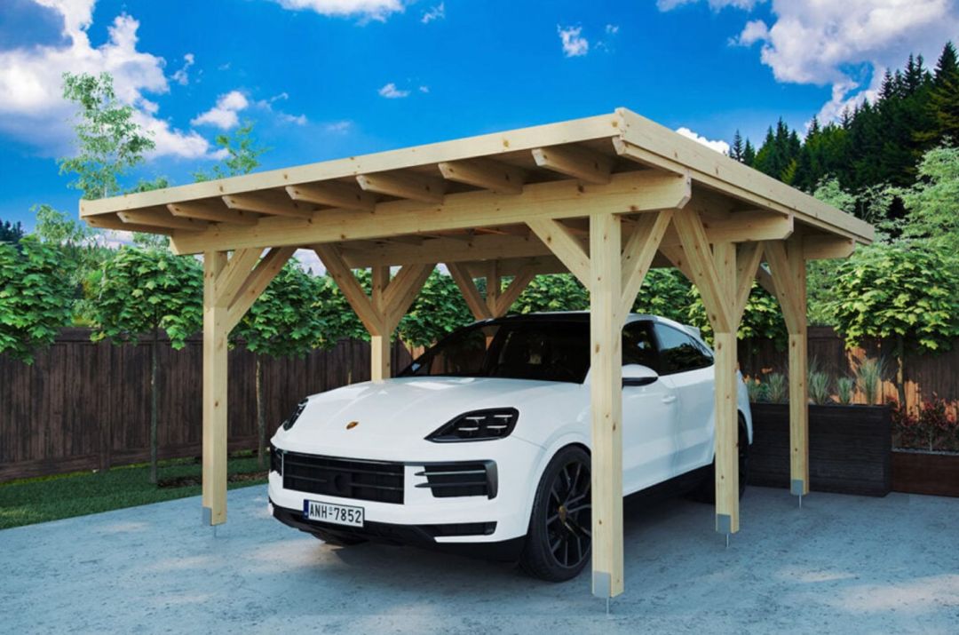 Carport tettoia per auto in legno con tetto mono-falda e per singola auto: protezione, stile e funzionalità in un’unica struttura. È costruita con legno nordico a lenta crescita, con altezza regolabile (se necessiti di un'altezza specifica comunicacela che possiamo personalizzare il prodotto).  Questa tettoia - carport in legno rappresenta una soluzione pratica e di design per chi desidera proteggere il proprio veicolo dagli agenti atmosferici senza rinunciare all’eleganza. Progettato per inserirsi con discrezione e armonia in qualsiasi contesto residenziale, questo modello unisce solidità costruttiva e cura estetica in un prodotto pensato per durare nel tempo.